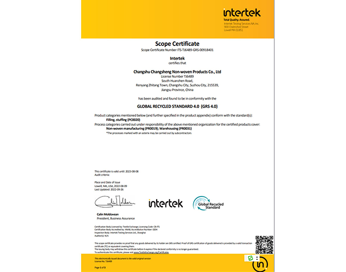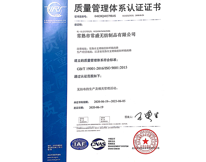 常熟市常盛無紡制品有限公司座落在中國無紡名鎮——任陽鎮,擁有生產、倉儲車間11200平方米,通過ISO9001、ISO45001、ISO14001體系認證。公司具有15年的無紡產品生產經驗,專注于紡絲棉的生產。產品廣泛采用GRS認證的環保材料,通過bluesign藍標認證,充分體現環保可持續理念和價值觀,與世界500強企業保持長期良好的合作。